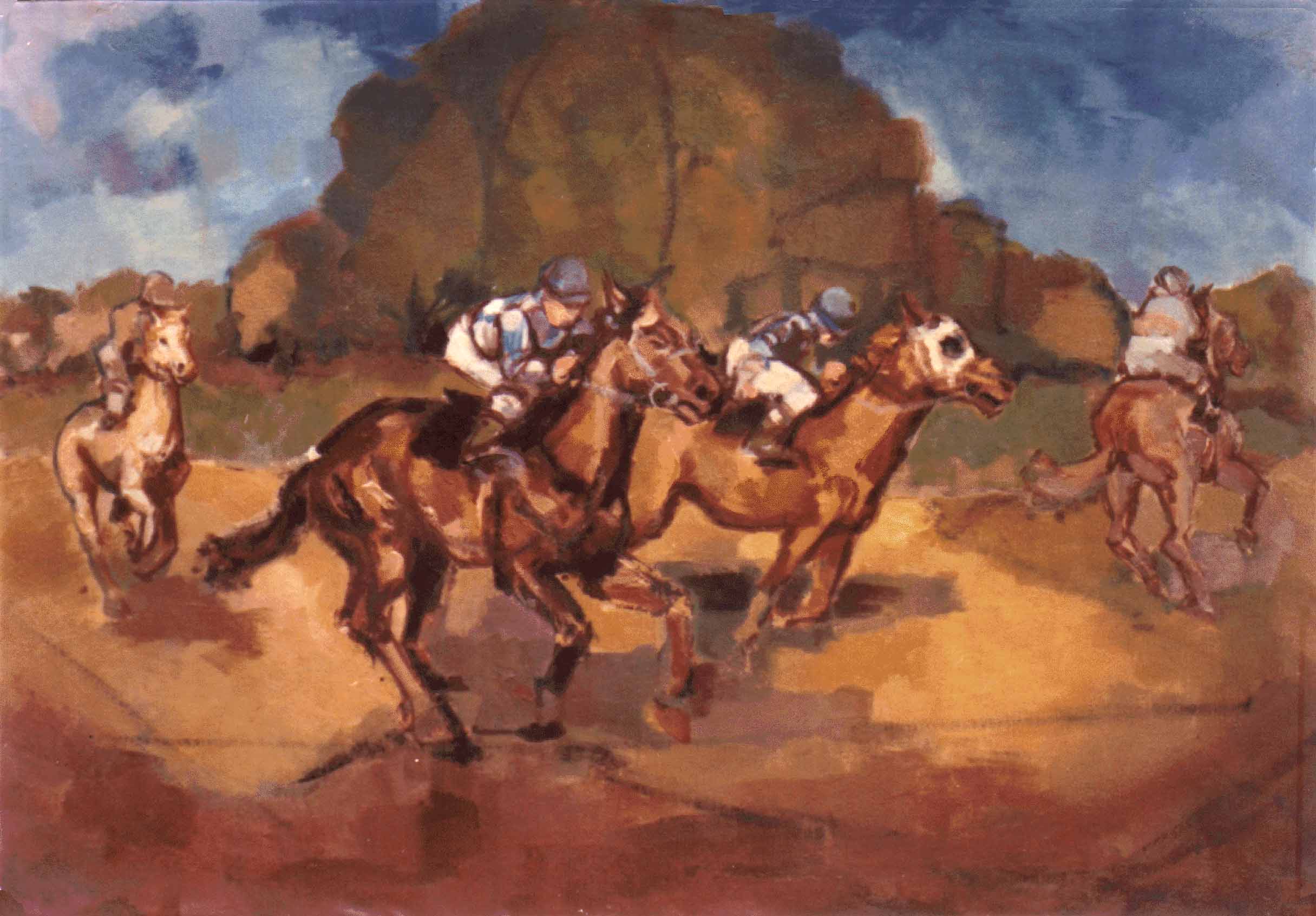 Horse Race was an early painterly experiment using "curvalinear perspective".
