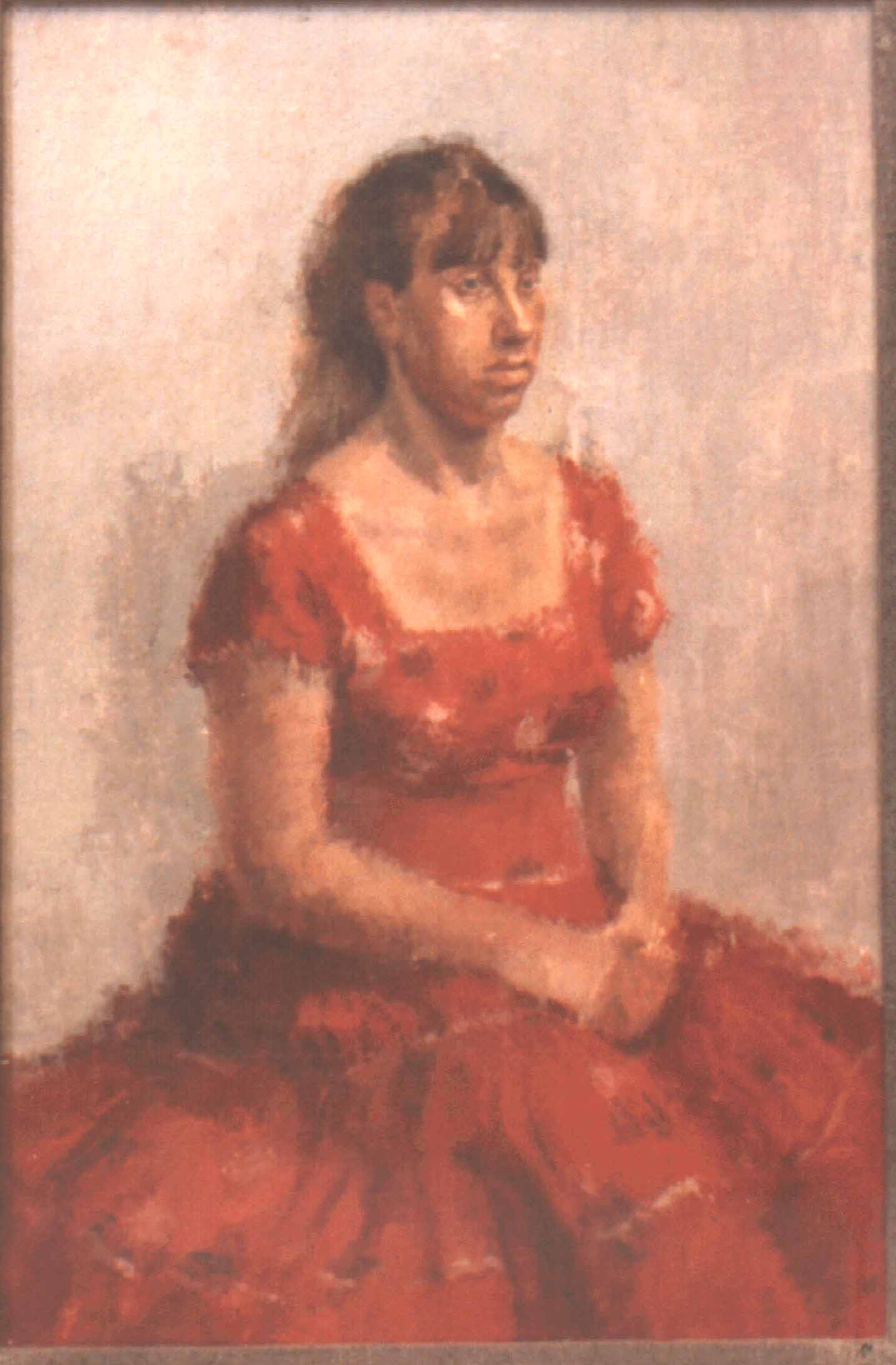 "Young Girl in a Red Dress" 9" X 12" oil on gesso