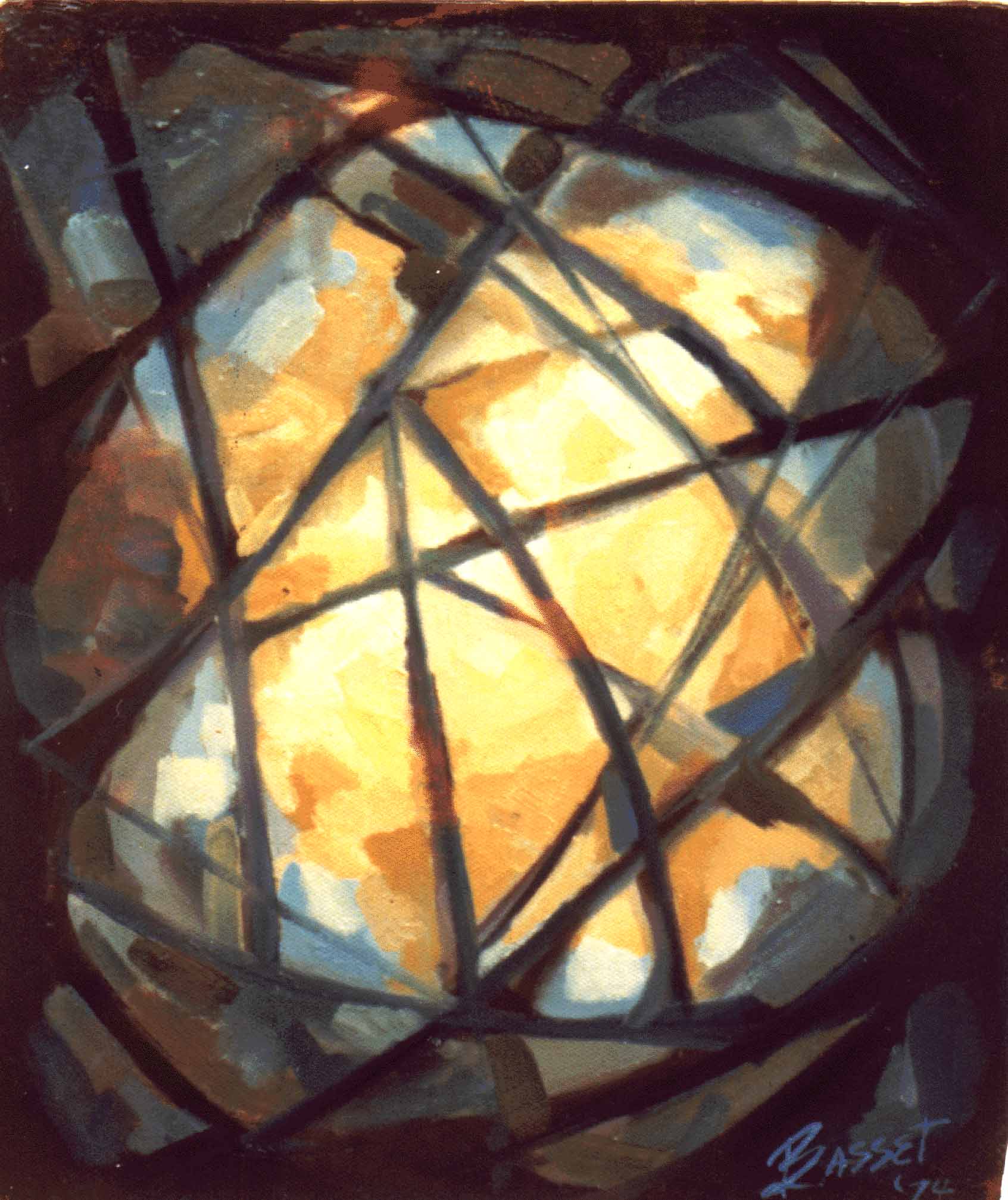 An emerging interest in abstract was sparked by an aquaintance Basset made at the Sir John Cass School of Art. Nabil Shahade was a Jordanian whose family sent him abroad to study in London where he met Basset.