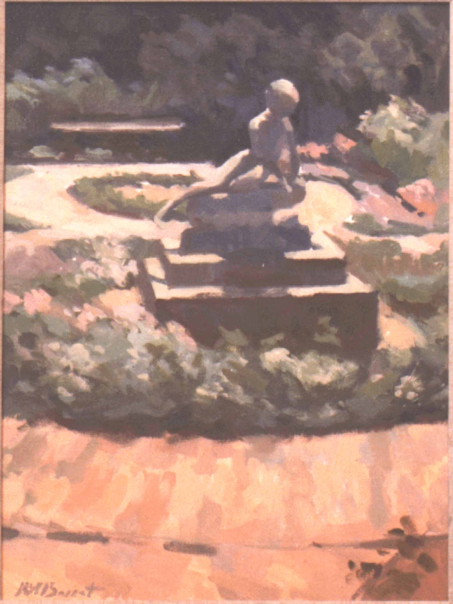 This painting was one of quite a few Basset produced using a statue as a subject. His colors are beginning to reflect the influence of the particular light that is characteristic of the Rocky Mountain Region. Click on image to see detail view.